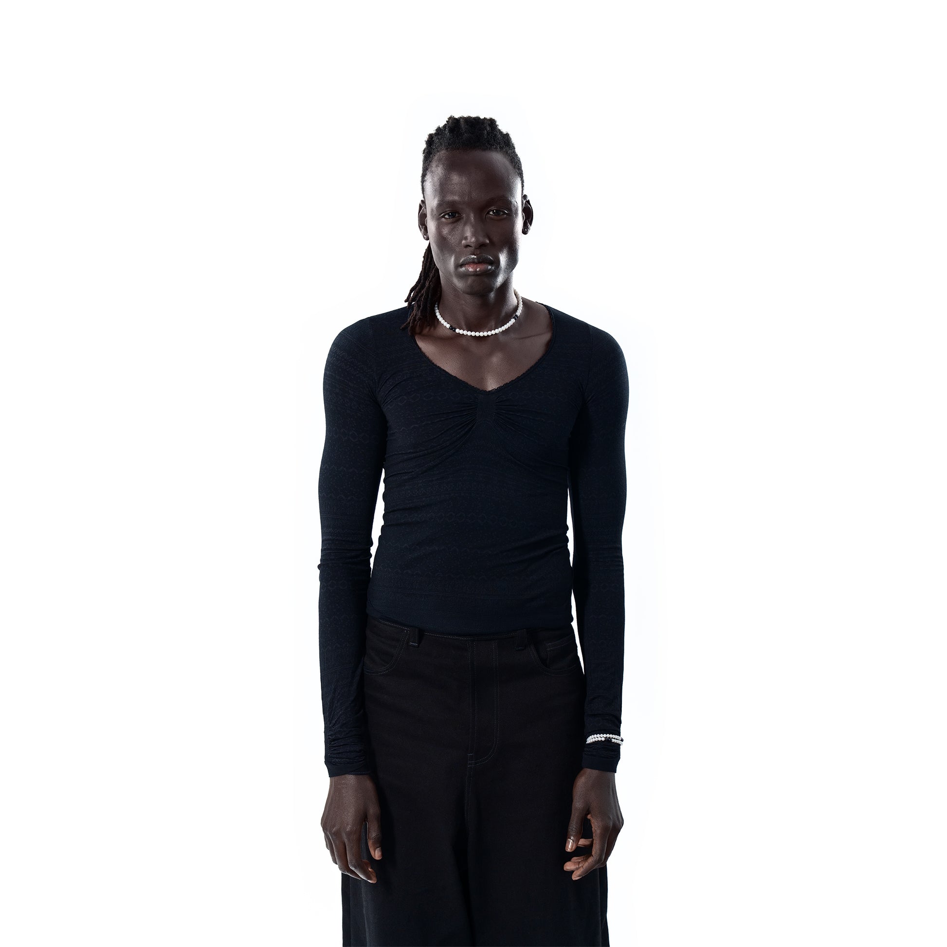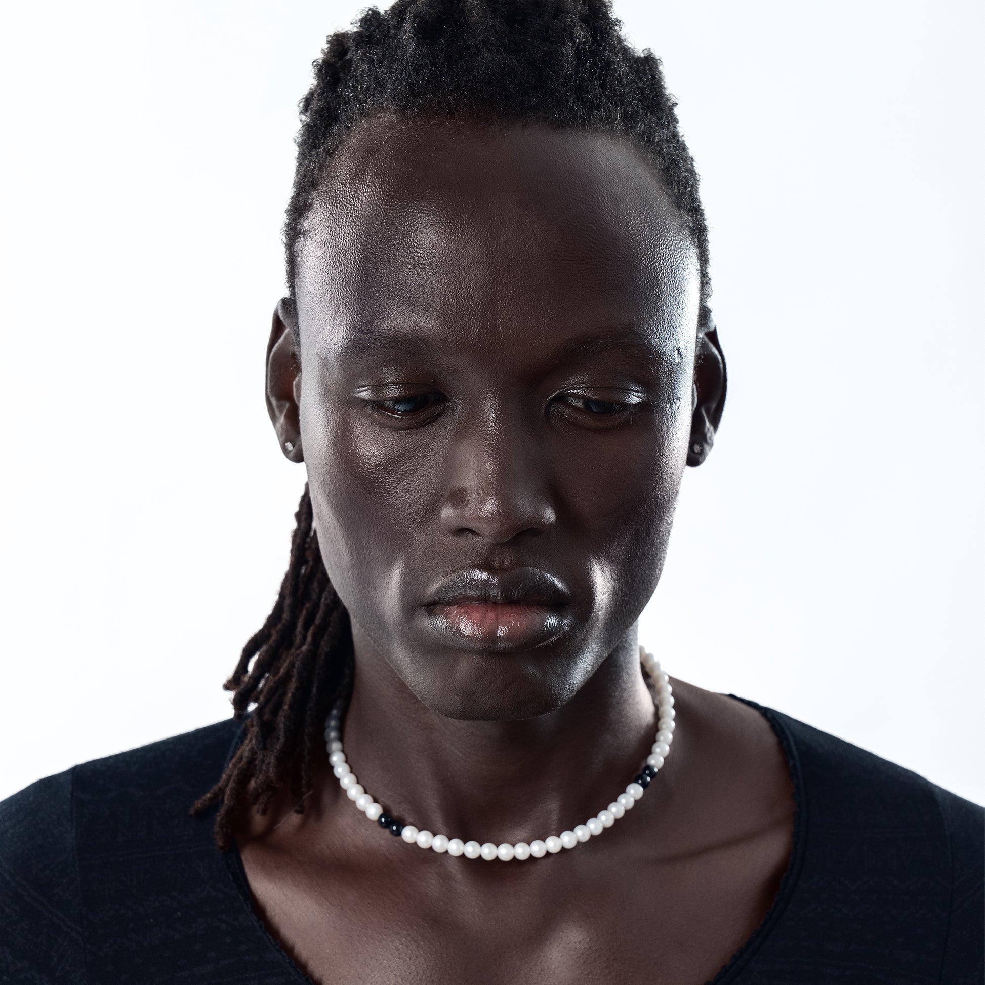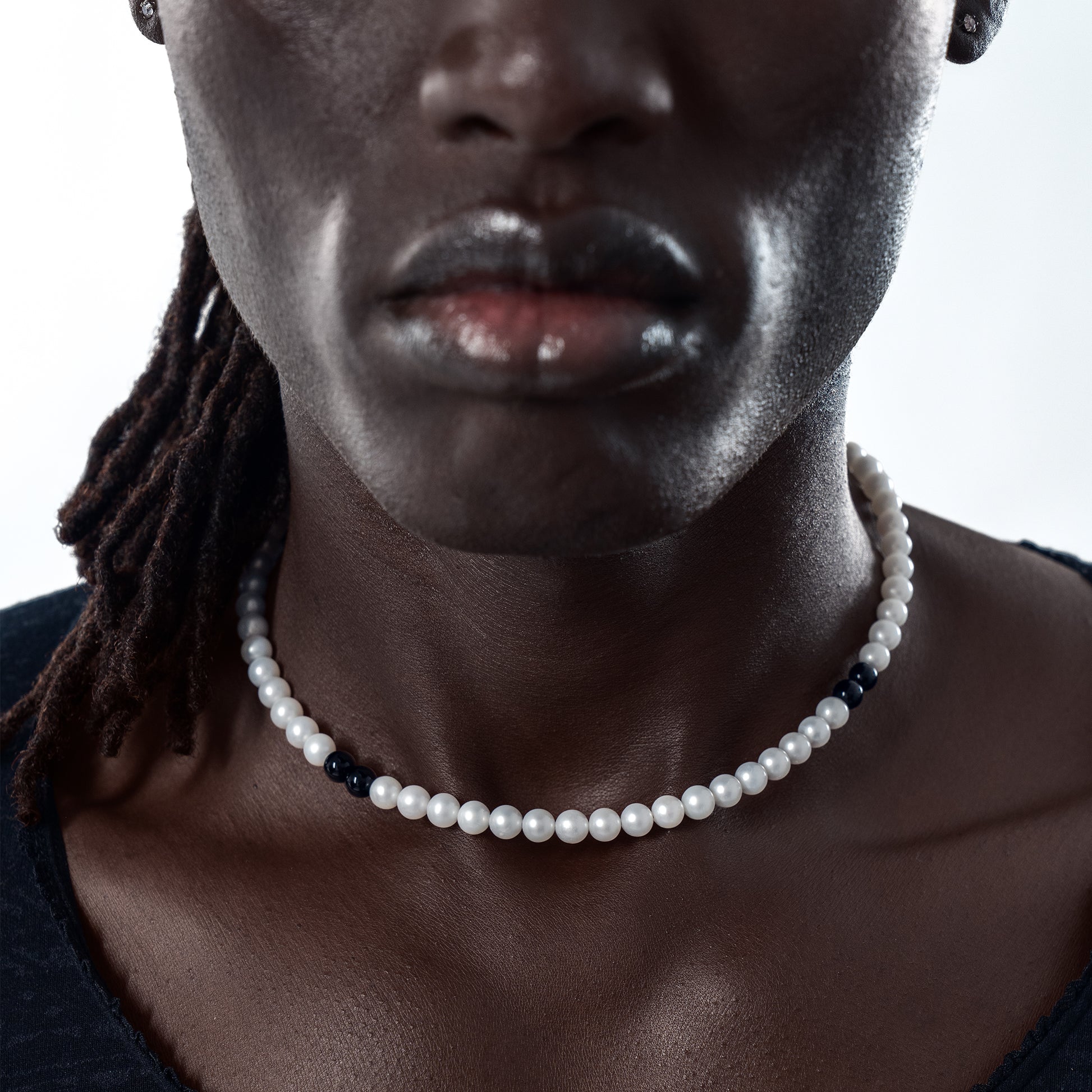 AAAA grade freshwater lustre pearls, complemented by onyx.